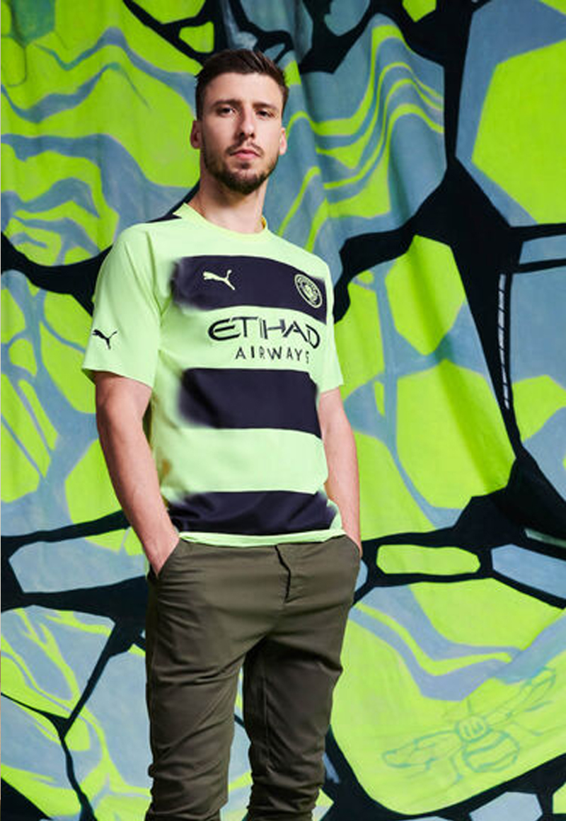 Áo bóng đá Man City sân khách mẫu ba – Citizen go Buzzing, mang ý nghĩa tôn vinh sự sáng tạo đến từ các tác phẩm nghệ thuật đường phố đến từ Thành Manchester. Các đường kẻ sọc đen trên áo được mượn ý tưởng từ Manchester Worker Bee, một biểu tượng quen thuộc được nhìn thấy tại các con phố, bức tường, triển lãm tại thành phố này.